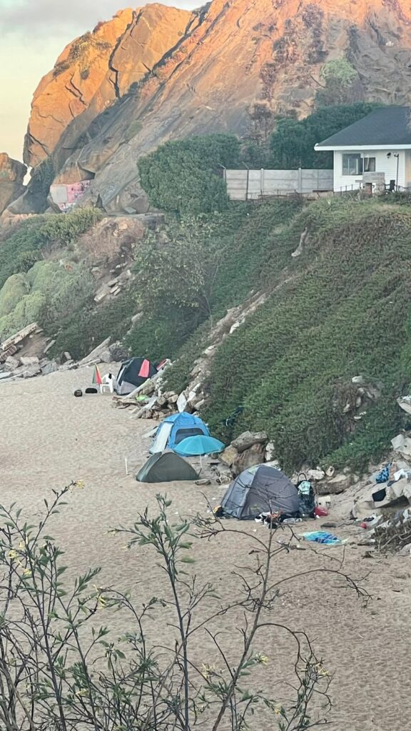 Sin embargo, esta vez la denuncia de vecinos apunta a la instalación de personas en carpas que pernoctan en la Playa del Deporte en avenida Jorge Montt -en la ruta entre el centro de Viña del Mar y Reñaca-, justo enfrente del Club de Campo Las Salinas y a los pies de otras propiedades de administración naval.